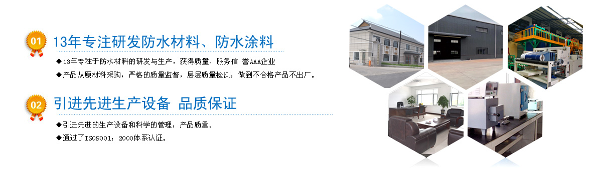13年專注于防水材料的研發,獲得工業產品生產許可企業; 嚴格按照IS09001質量管理體系標準進行管理......